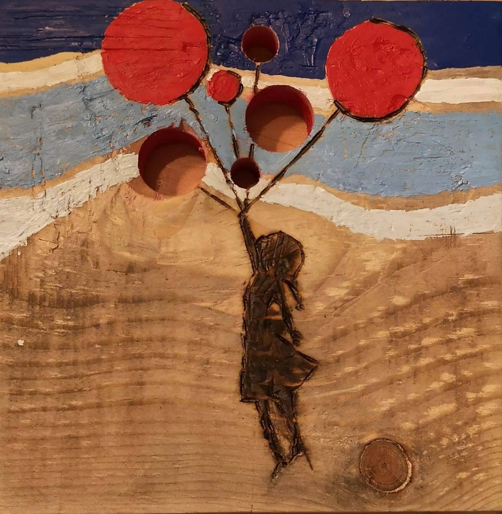 Realizzati con legno di scarto. La decorazione dell'albero e della palla sono personalizzati a secondo del gusto del cliente
